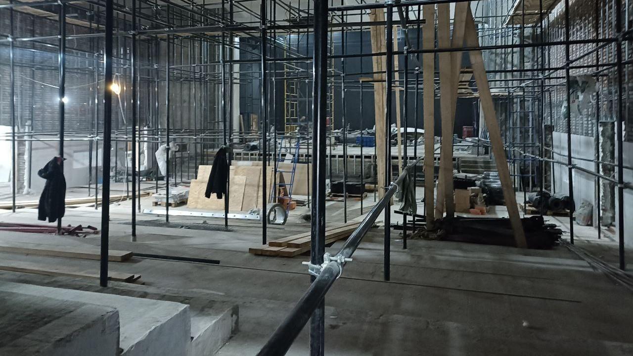 Отдельное внимание при капремонте уделено актовому залу. Сейчас там устанавливают противопожарную систему оповещения, а также звуковое, светотехническое оборудование.