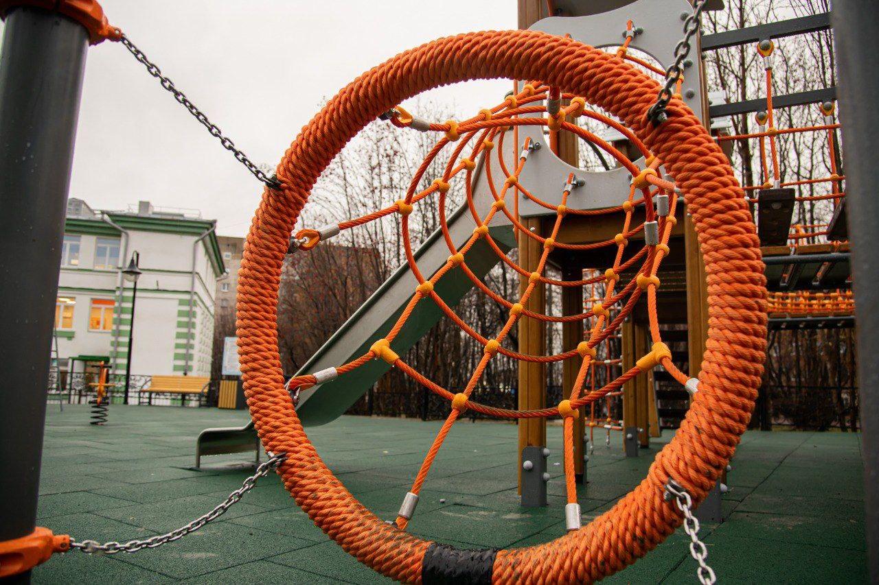 На территории установили 10 игровых и спортивных элементов, поставили удобные лавочки для родителей и уложили безопасное ударопоглощающее покрытие на 601 кв. м. Работы проводились с учётом пожеланий жителей микрорайона.