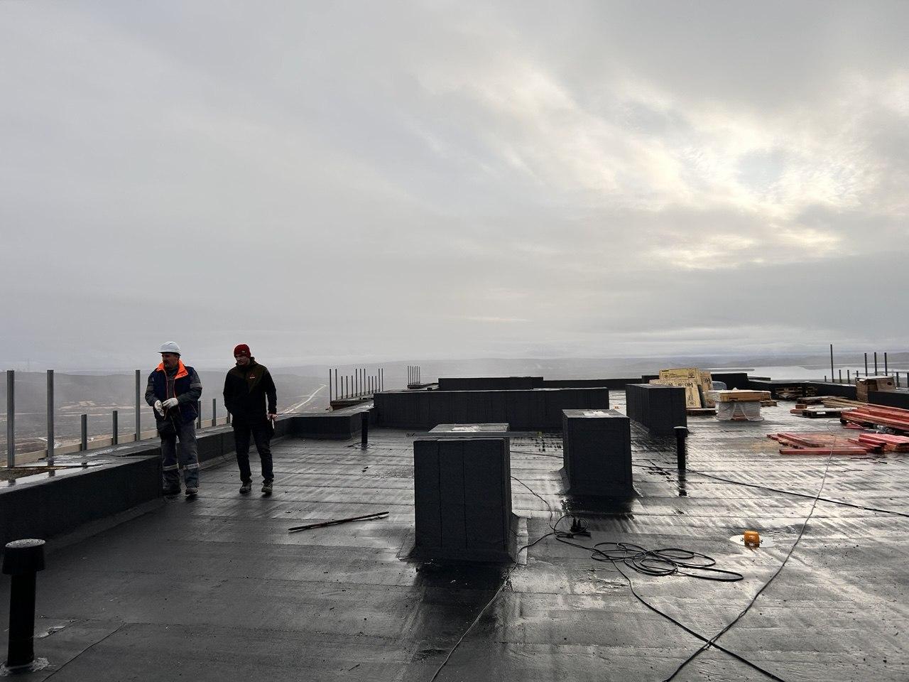 В настоящее время уже возведены новые межквартирные стены, усилены проемы, на всех этажах стоят стеклопакеты, проведены монтаж кровли и подключение к инженерным сетям. Строители продолжают монтировать утеплитель и вентилируемые фасады из керамогранита, а также усиливать перекрытия и проводить черновую отделку. Вскоре начнется строительство лестницы с торца здания.
