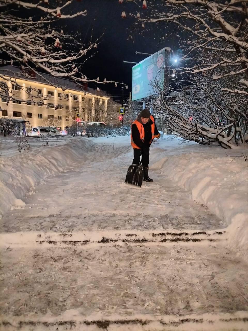 Накануне Управление дорожного хозяйства вывезло с улиц Мурманска около 1 650 кубометров снега. Для обработки дорог, тротуаров, переходов, ступеней и зон ожидания общественного транспорта использовали более 270 тонн противогололедной смеси.
