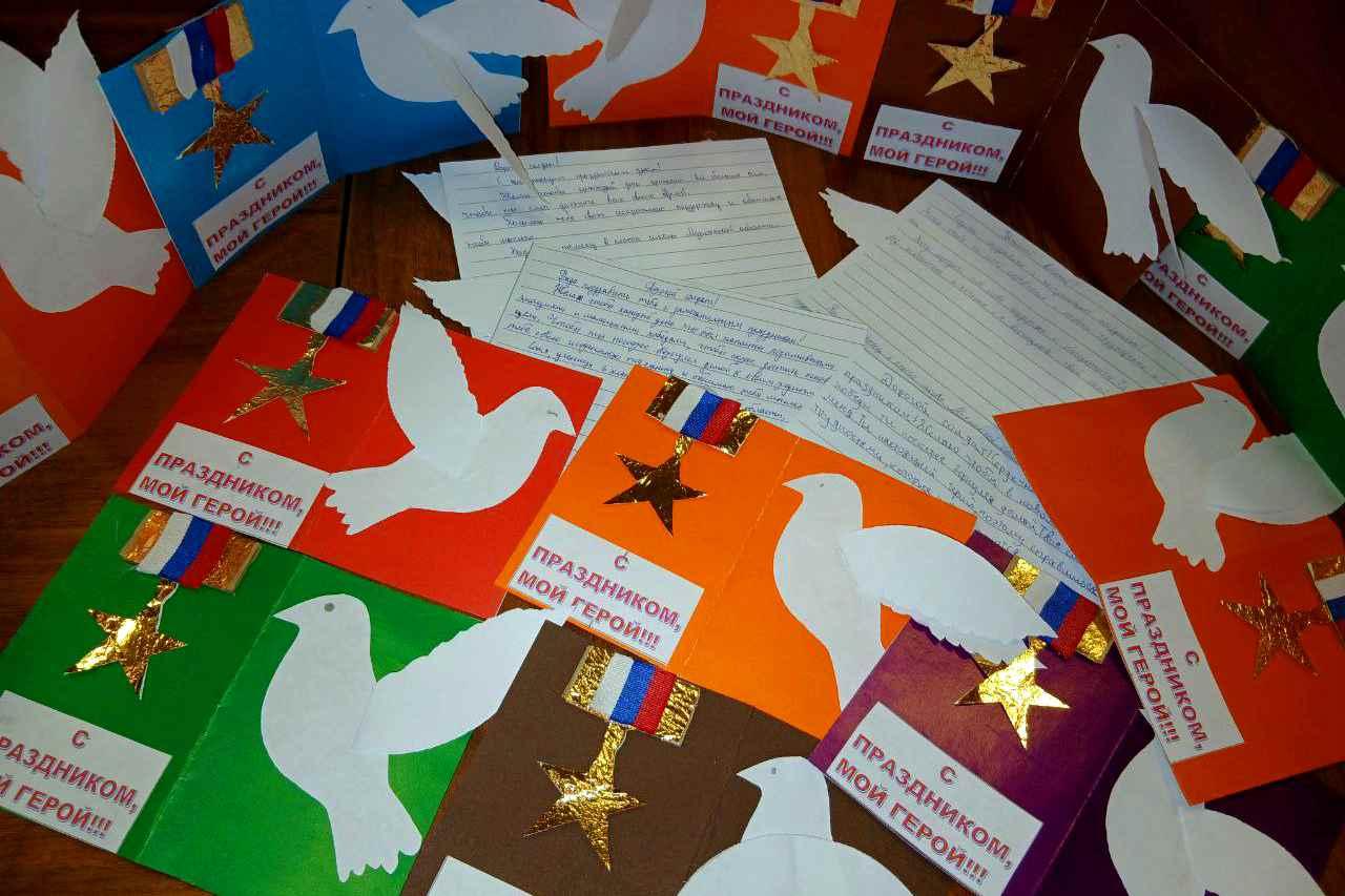 Дети изготовили открытки бойцам, где написали пожелания и слова благодарности