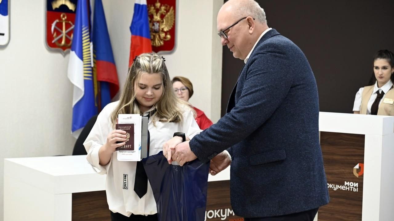 В преддверии Дня Конституции Российской Федерации юным североморцам, которым исполнилось 14 лет, вручили паспорта. Об этом на своей странице "ВКонтакте" сообщил глава города Владимир Евменьков.