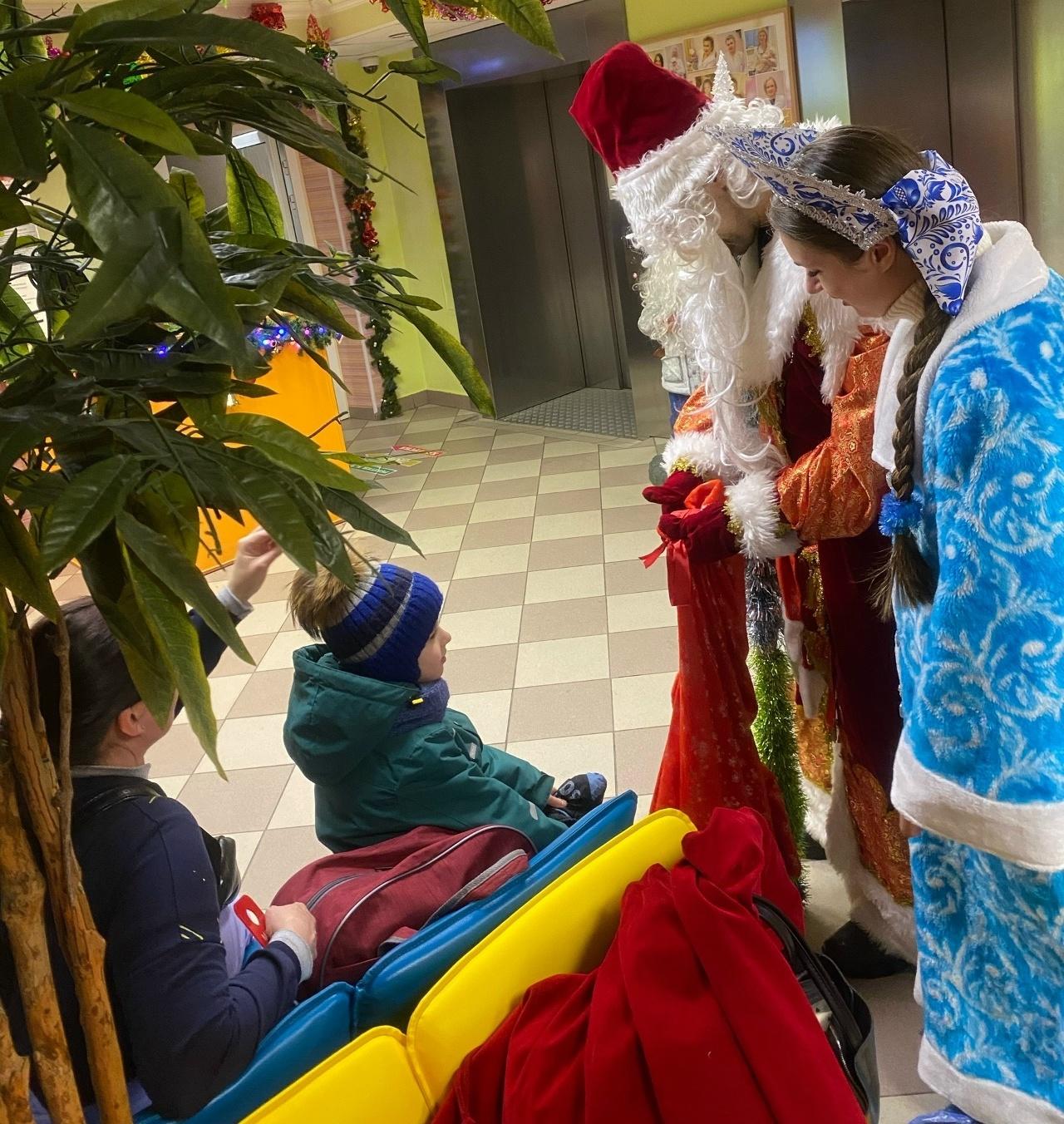 В холле больницы они провели увлекательную игру, проверив знания правил дорожного движения. Ребятам напомнили о важности безопасности. Дети и гости зажгли огни на новогодней елке, а самые смелые и талантливые маленькие северяне прочитали для Деда Мороза праздничные стихи.
