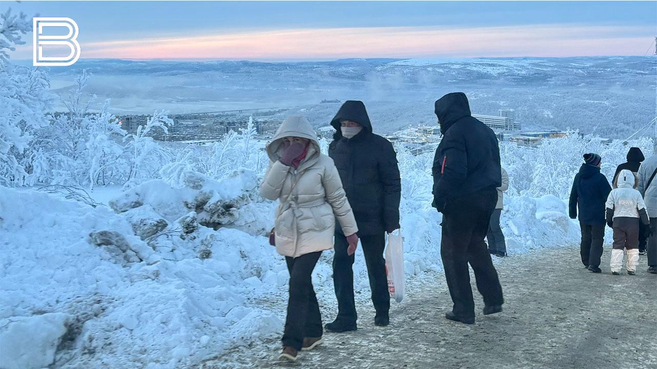 Облачность и туман помешали в полной мере насладиться первым рассветом. В 12:29 по московскому времени только отблески ало-оранжевых лучей капризного светила появились на небосклоне. Однако люди продолжают подниматься на самую высокую сопку в Мурманске. Хотя бы ради завораживающих видов.