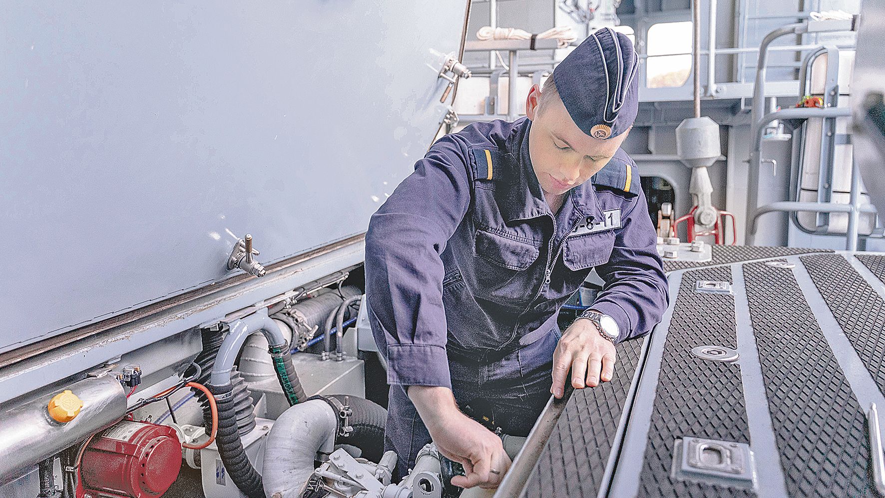 Кстати, экипаж патрульного корабля "Иван Папанин" формировался в основном из хорошо подготовленных специалистов, проходивших службу в соединении противолодочников, кое-кто пришел из бригады кораблей охраны водного района. За плечами многих из них были дальние морские походы, выполнение мероприятий боевой подготовки в полигонах Северного флота. Некоторые моряки прошли через горнило боев специальной военной операции, имеют государственные награды. Например, начальник медицинской службы ПК награжден медалью "За спасение погибавших", командир отделения сигнальщиков удостоен ордена Мужества, а старшина команды связи - медали "За отвагу". Нужно добавить, что начинал он сражаться с необандеровцами еще в рядах добровольцев Донбасса.