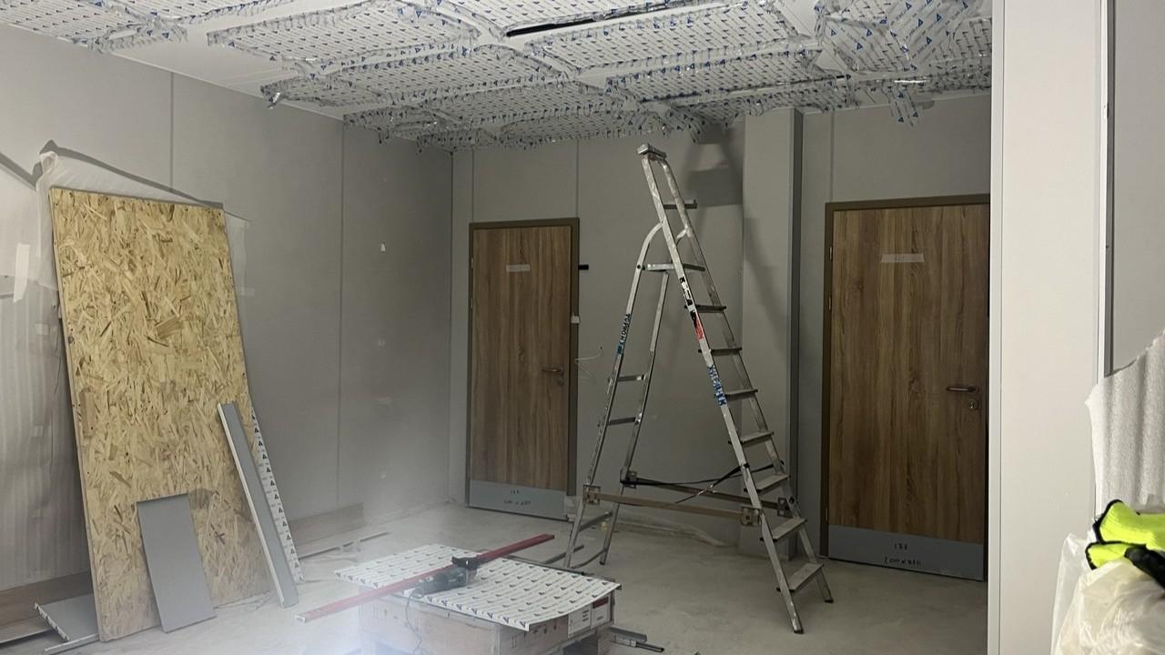 Подрядчик активно продолжает выполнять отделку помещений. Рабочие кладут плитку в санузлах, монтируют панели на стенах и потолке, скоро начнется укладка линолеума. В помещениях операционных завершается монтаж стеклянных стеновых панелей, на лестничных маршах устанавливают ограждения. Параллельно завершается монтаж вентилируемых фасадов."Постепенно вырисовывается окончательный облик нового хирургического корпуса онкодиспансера. Не скрою, объект сложный как в силу значительного объема работ, так и в силу необходимости монтажа медицинского оборудования, требующего высочайшей квалификации специалистов. Несмотря на все сложности, мы движемся к завершению", - отметила глава министерства Александра Карпова.