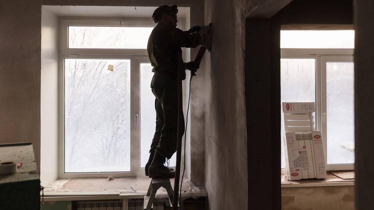 Рабочие приступили к черновой отделке стен и полов