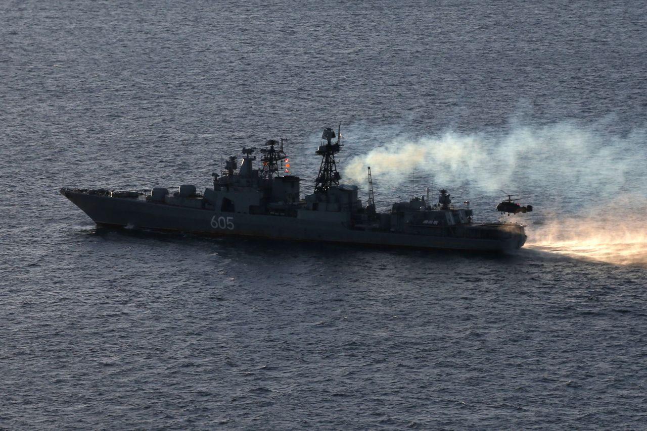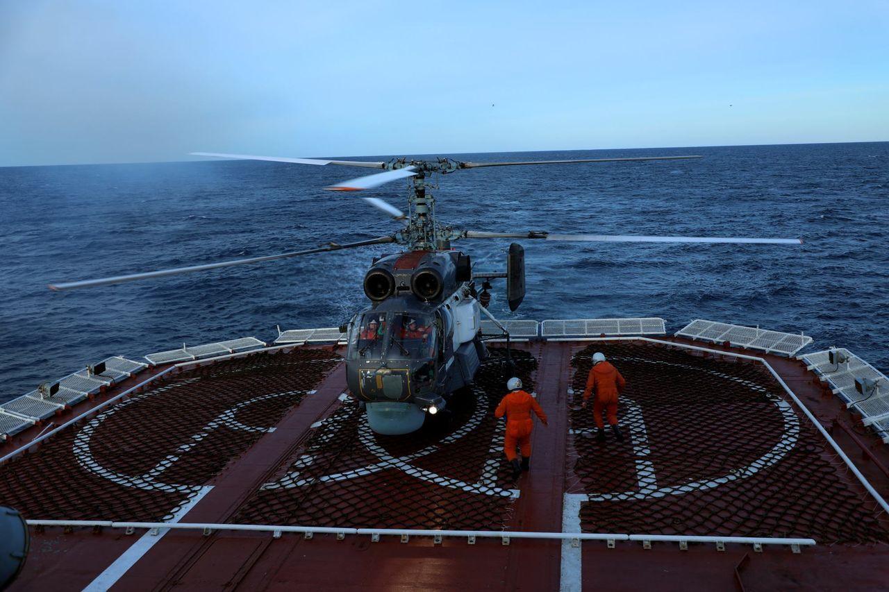 Экипажи вертолетов Ка-27 отдельного корабельного противолодочного вертолетного полка смешанного авиационного корпуса Северного флота провели учение по взаимодействию с большим противолодочным кораблем "Адмирал Левченко". Маневры прошли в акватории Баренцева моря в рамках плановой боевой подготовки, отметили в пресс-службе флота.