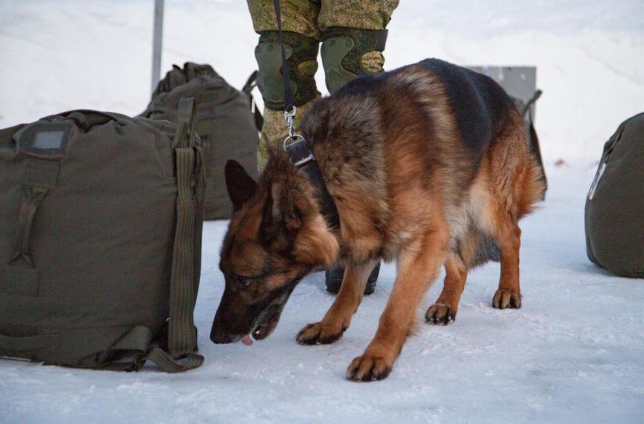 В инженерном полку Северного флота прошли тренировки с минно-розыскными собаками